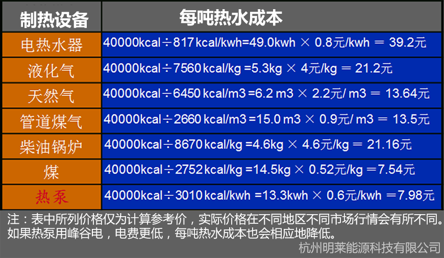 空气源热泵相对其他设备改造方案,其制热成本计算: